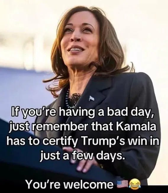 So many Kamala memes and so little time - meaning it’s time to redistribute them… But first, let’s again check in with her now that the elections are over…: