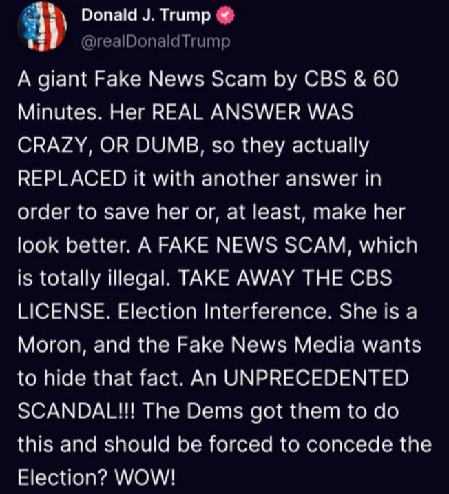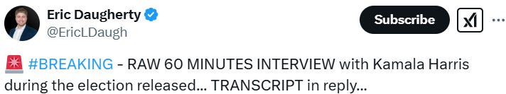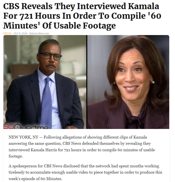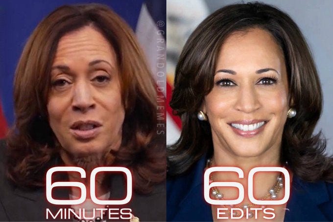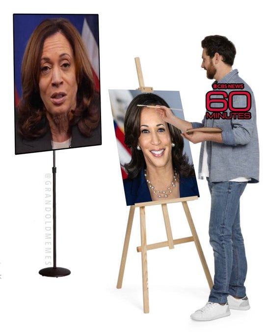 So many Kamala memes and so little time - meaning it’s time to redistribute them… But first, note that 60 Minutes has released the full video and transcript for her trainwreck of an interview: