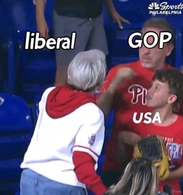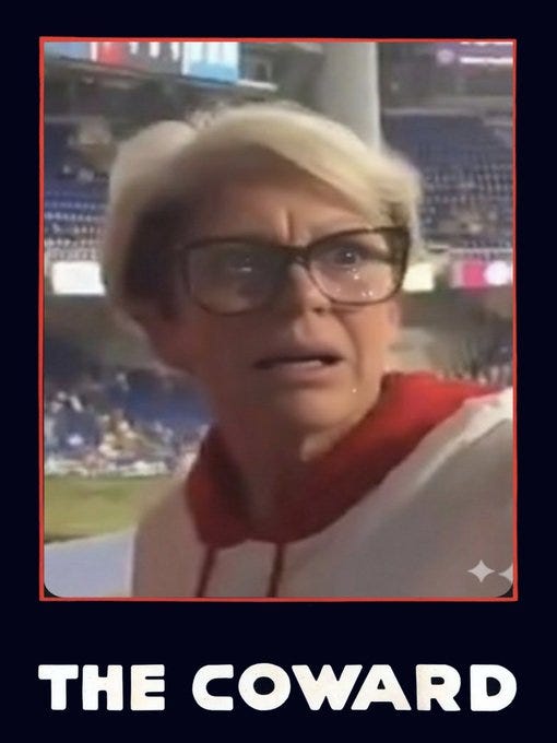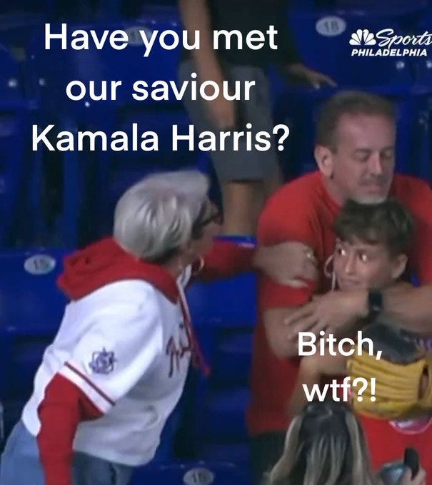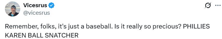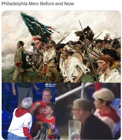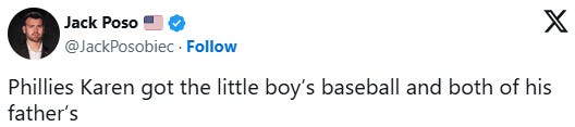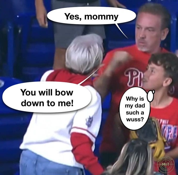 Another day and another white middle-aged Karen on too many SSRIs and wine/cannabis behaving badly and an American so-called MAN putting up with it - this time at a Phillies game:
