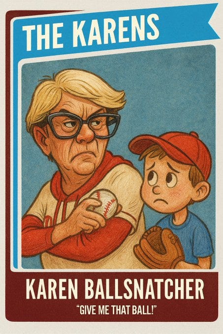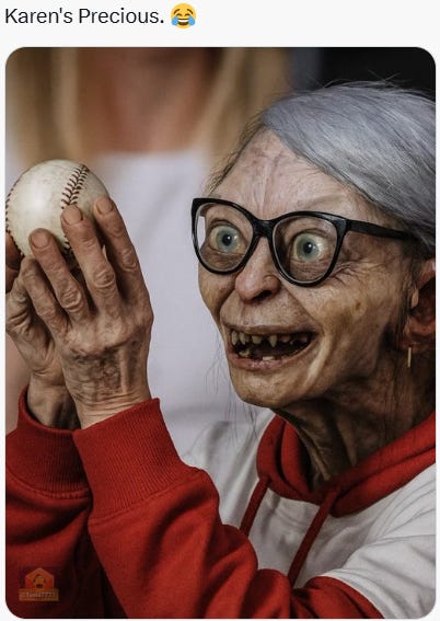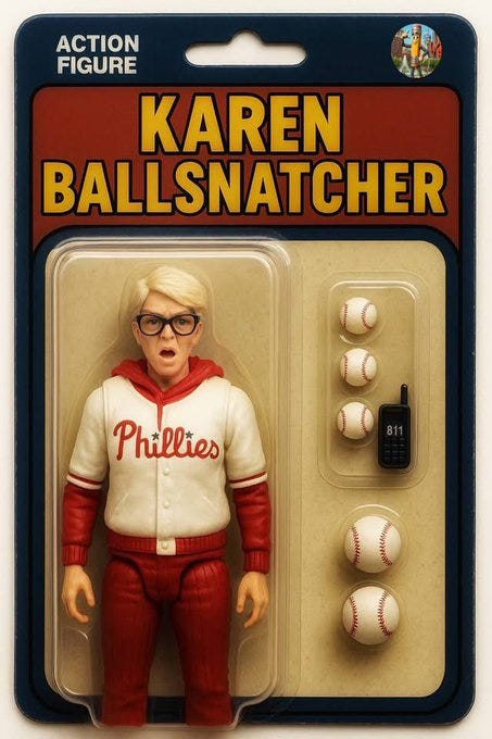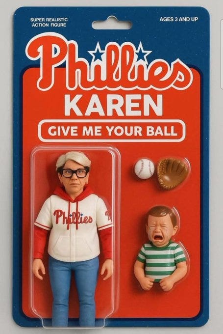Karen vs. beta male dad (metaphor for America & what's wrong with American "men"), Karen ballsnatcher, ultra Karen, Karen's Precious, she must be a Kamala voter and more Phillies Karen memes!
