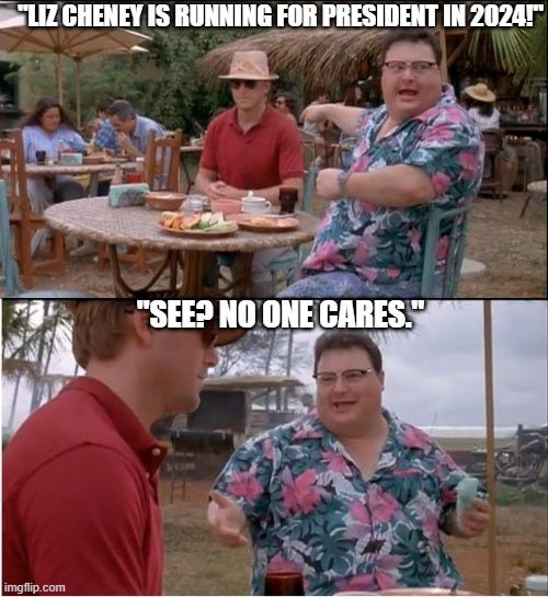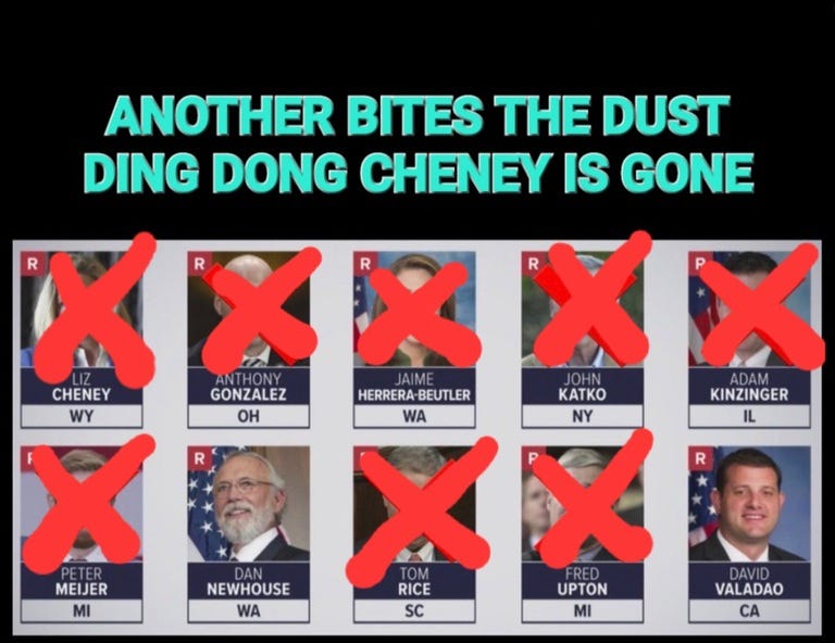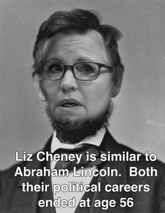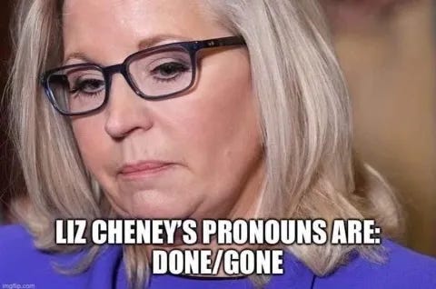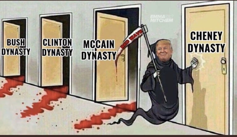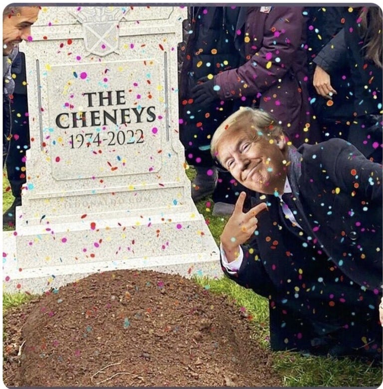 Grim reaper Trump strikes again as another warmongering RINO political dynasty bites the Dust! Like father, like daughter, moving on to bigger and better things and more Liz Cheney memes!