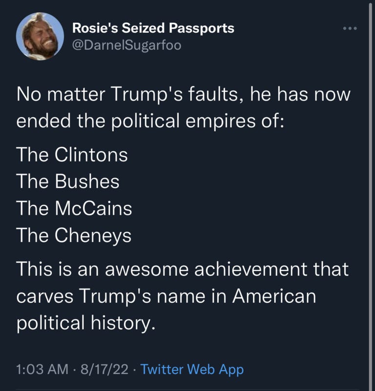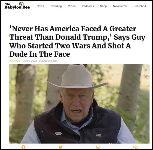 Normally, it would be sad when another endangered species goes extinct. But not when it comes to neocon warmongering RINO political dynasties. And when the neocon warmongering RINO political dynasty that goes extinct is named Cheney, I think everyone, whether a Democrat or Republican or Trump supporter or non-Trump supporter, can agree that’s SOMETHING TO CELEBRATE! [NOTE: I can’t find a link to the video meme Steve Bannon played yesterday of the coffin pallbearer dance with him, Trump etc carrying Cheney…]