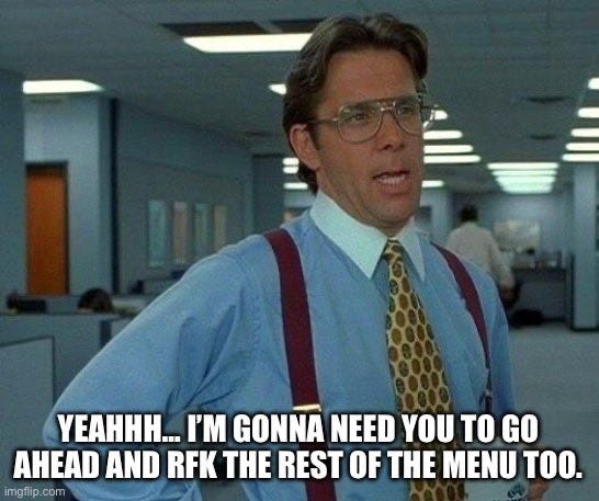 Are you ready to eat healthy? Are you hiding artificial preservatives under the floorboards? "RFK doesn't understand medicine," don't eat that, RFK that menu and more RFK Jr. and MAHA memes!