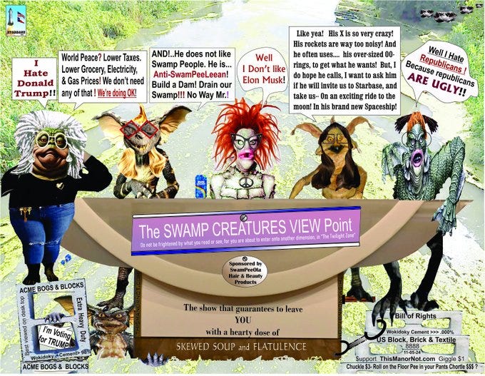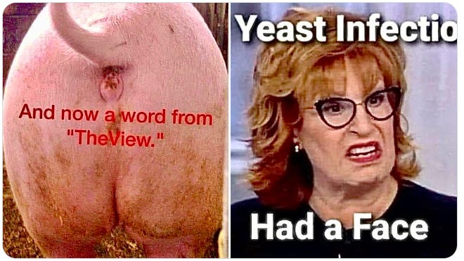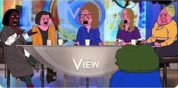 Ratings? ABC don’t need no stinking ratings! The cast of The View summed up (IF yeast infections had faces), screech (about Trump etc), swamp creatures viewpoint & more The View to go on hiatus memes!