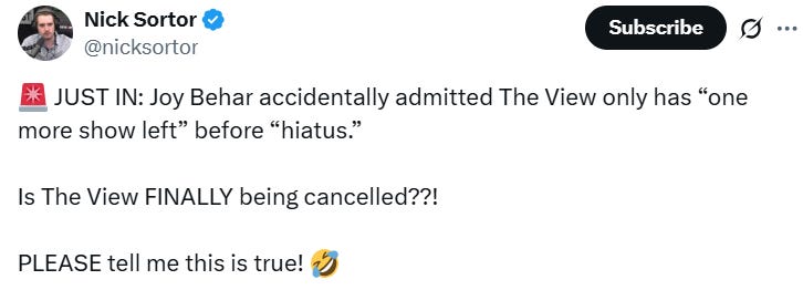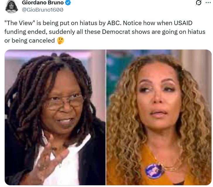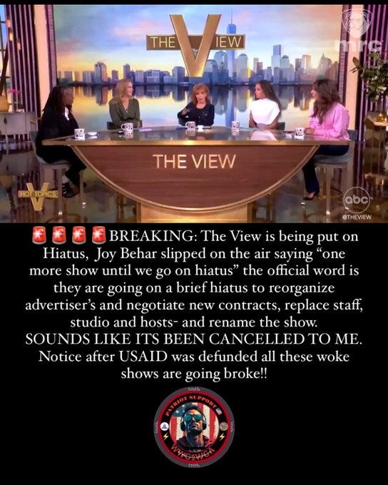 First they came for Colbert and the Late Show and now it sounds like they are coming for The View as the show may be going on hiatus: