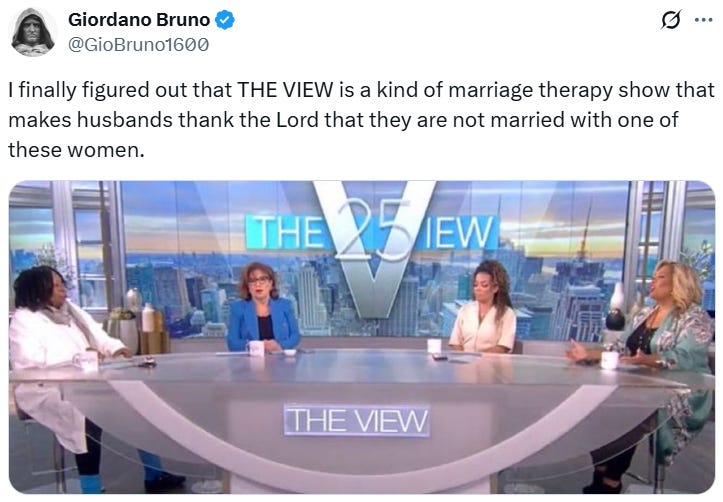 This is bad because without The View, unhappy suburban wino progressive women WON’T have a clue what to think or say to all the other unhappy suburban wino progressive women…