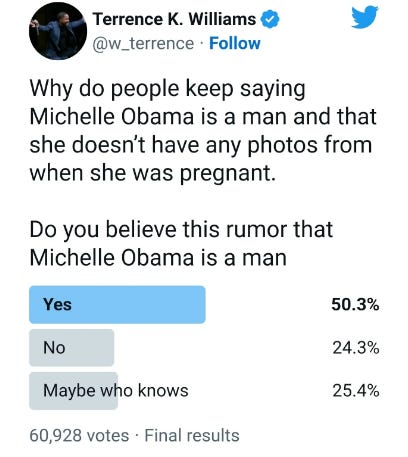 Let’s do an “is Michelle Obama a man” poll: