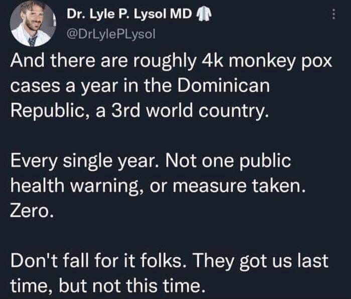 Here is another theory about the origins of Monkeypox that I am just throwing out there to keep my readers informed…: