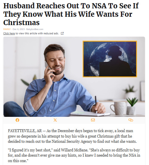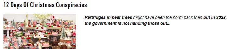 On the first day of Christmas my government sent to me another conspiracy theory.