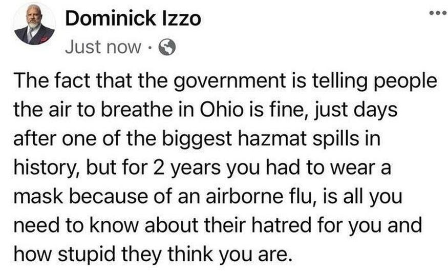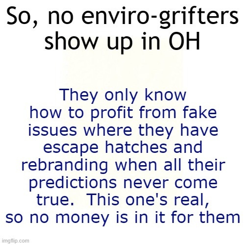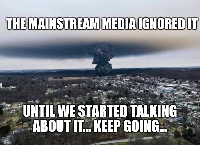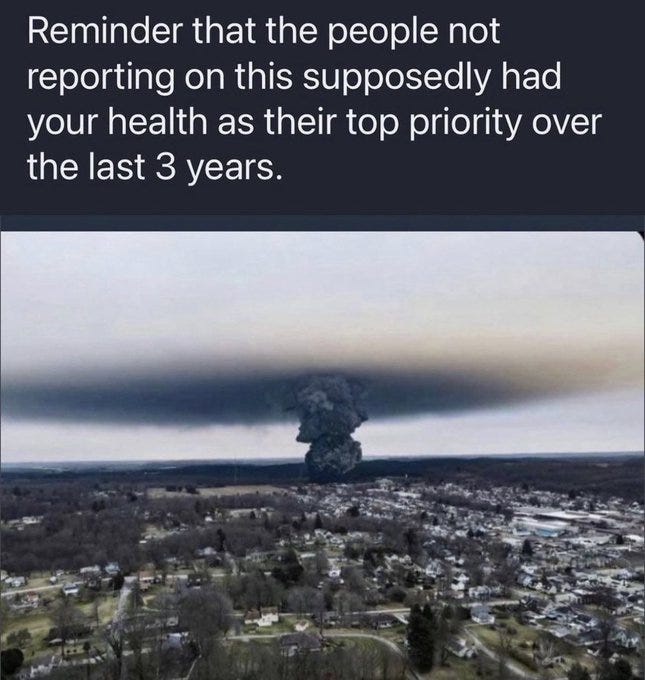 Where are the envirogrifters? Because they hate us, US government priorities, follow the money and more East Palestine Ohio train derailment memes as we need to keep talking about America's Chernobyl!