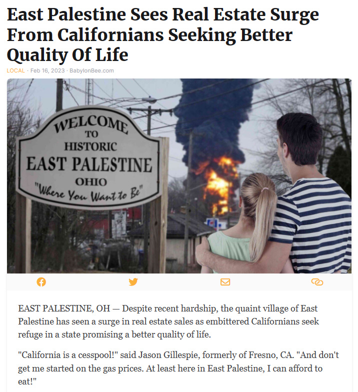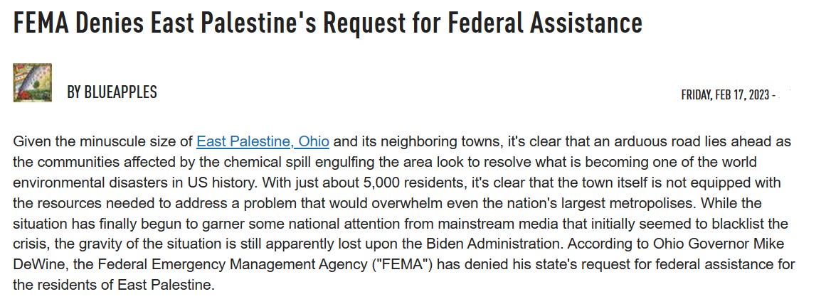 America’s Chernobyl keeps getting worst (see: CHERNOBYLsteria: Best Ohio Train Derailment Memes (Safe as a COVID Vaccine!)) and even the Chinese media knows not to trust what our government is saying (and are probably giving more accurate reports about what is actually going on on the ground):