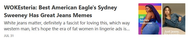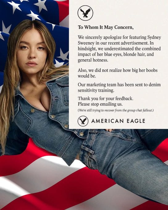 And now for some more American Eagle and Sydney Sweeney are NAZIs memes…