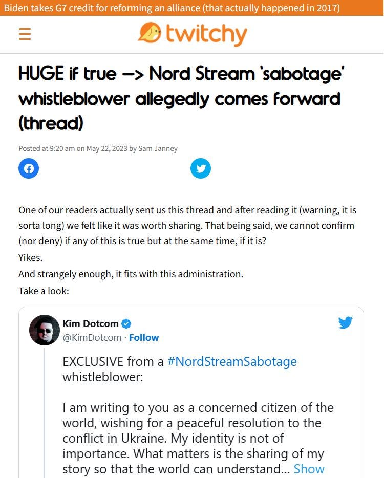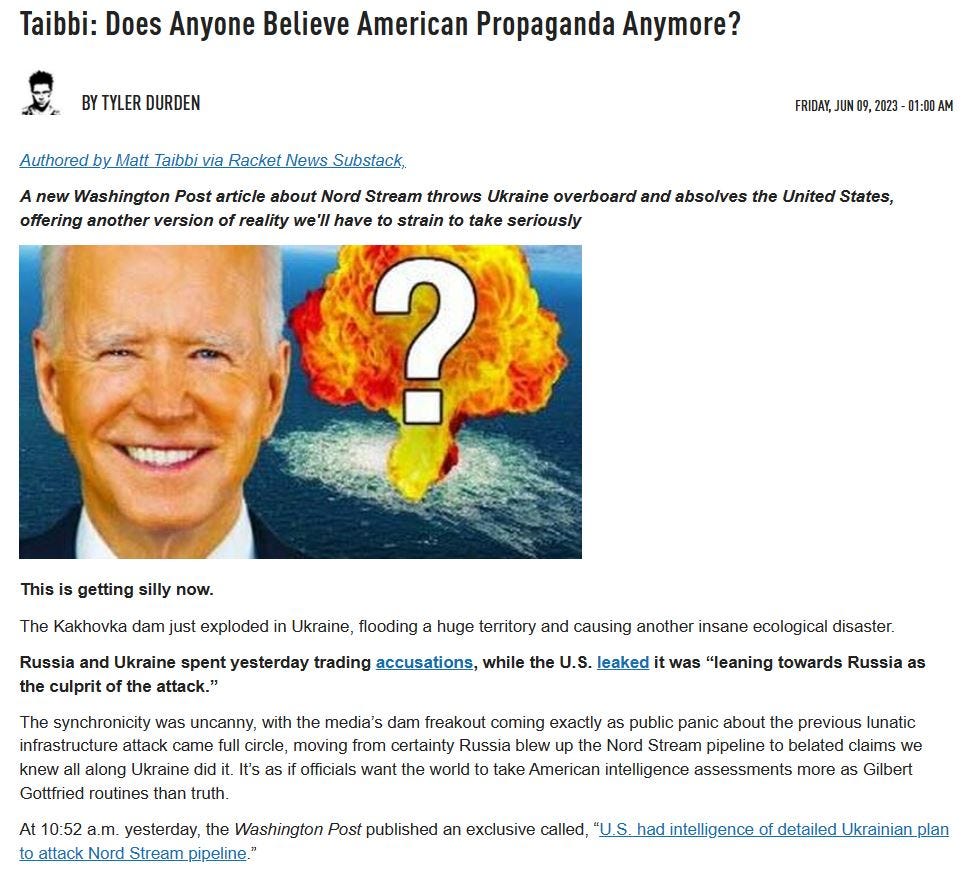 If the mainstream "watchdog press" can't even report that the president of the United States is suffering from ever-worsening dementia, they aren't going to investigate and report any truths on who really blew up these pipelines.