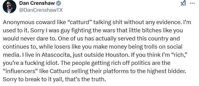 And now for some Dan (Eye Patch McCain) Crenshaw memes…