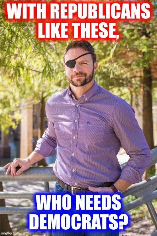 Undocumented Democrat (with GOPers like these, who needs Dems?), pirate of congress, insider trader Dan and more Rep. Dan (Eye Patch McCain) Crenshaw memes as he goes on another tweet tantrum!