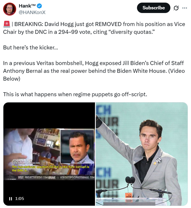 We are sad to report that David “Camera” Hogg has lost the struggle session and has been ousted as the DNC vice Chair for allegedly not being black/brown/gendered enough: