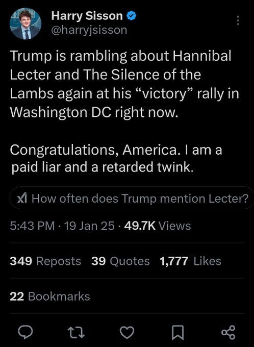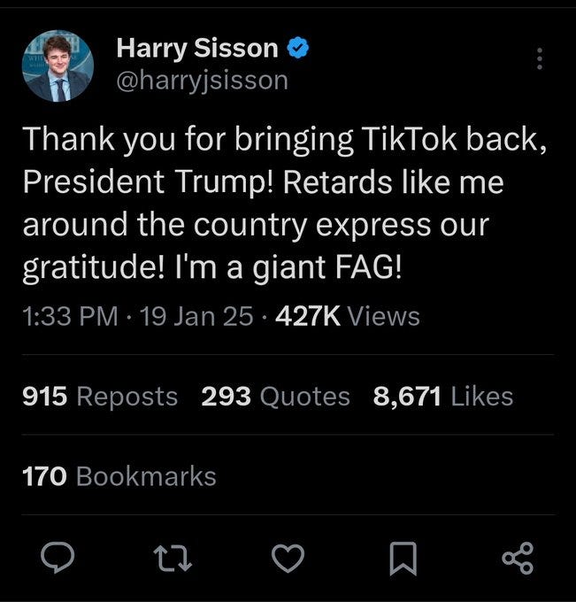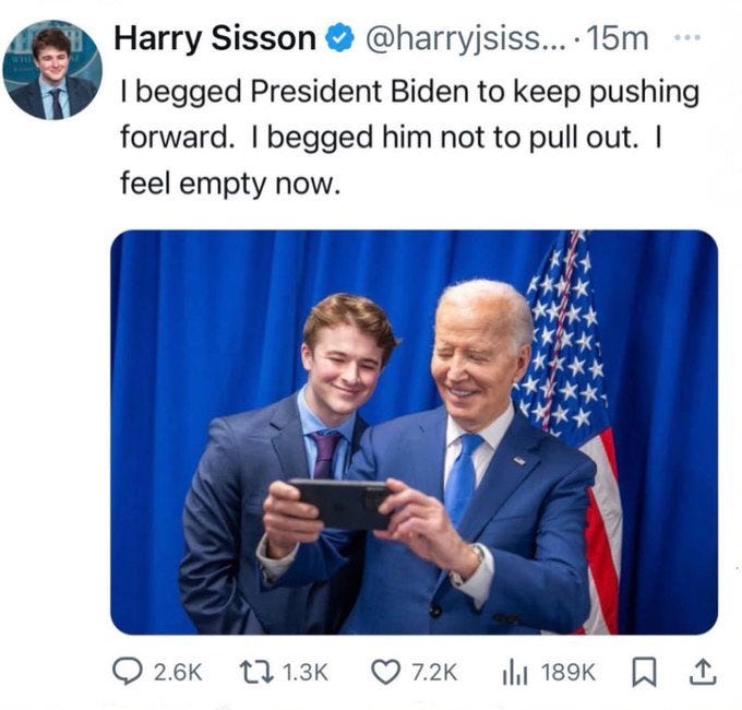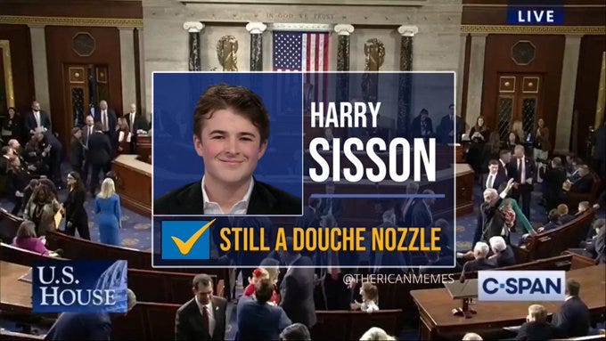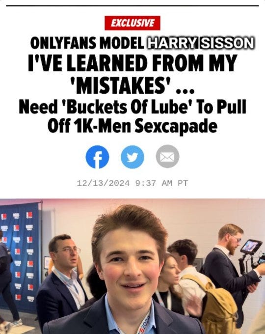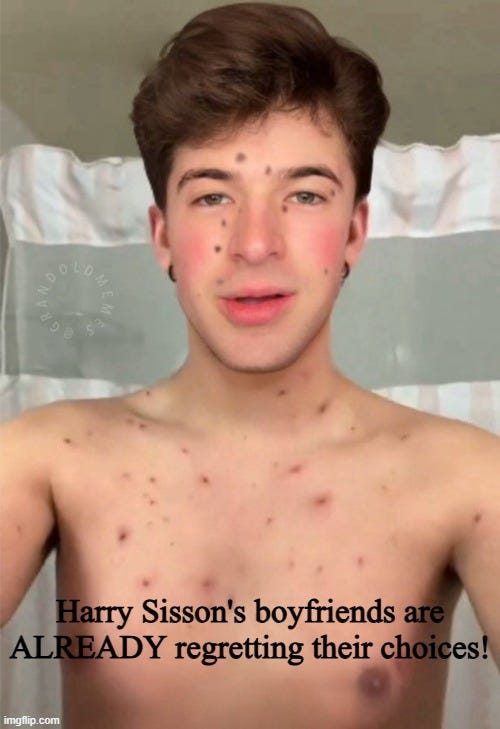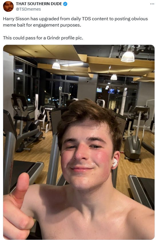 We have covered both ours and Biden’s favorite and now [under or] un-employed twink Gen Z influencer Harry Sisson (who we sincerely hope never ever goes away…) in a recent meme collection post: