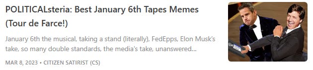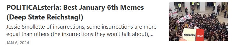 In case you have forgotten, I’m sure if you tune into corporate boomer media, they spend the day reminding you its January 6th… a date that will live in infamy… worse than 9-11, Pearl Harbor, the Maine exploding, Fort Sumter and blah blah blah blah blah combined… the day our “democracy” died in the darkness… 🥱🥱🥱