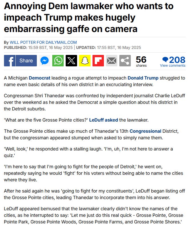 However, Michigan Rep. Shri Thanedar (who is trying to impeach Trump) is in another league - the same league as Fauci: