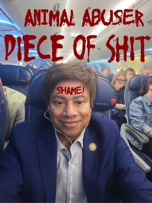 animal abusers belong in prison. all of them. I have a Beagle sitting here next to me and she absolutely agrees. What a nutcase. How in the world did he get elected?