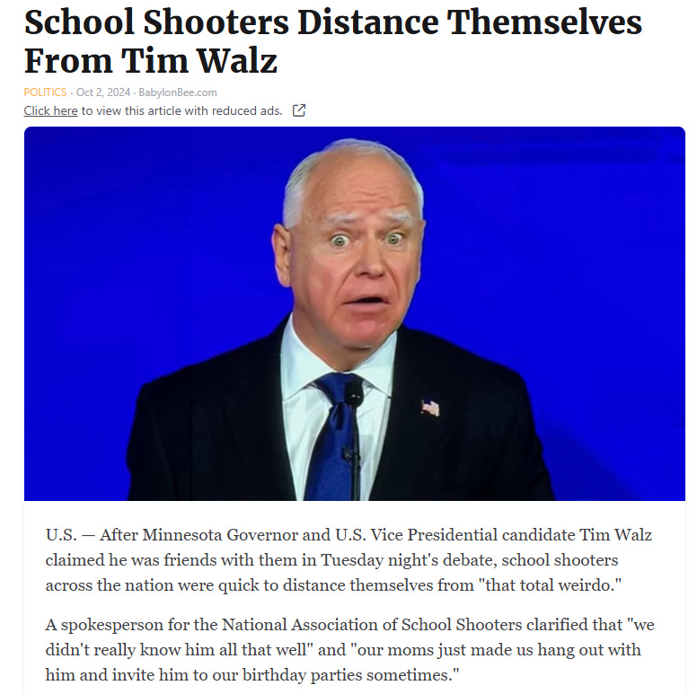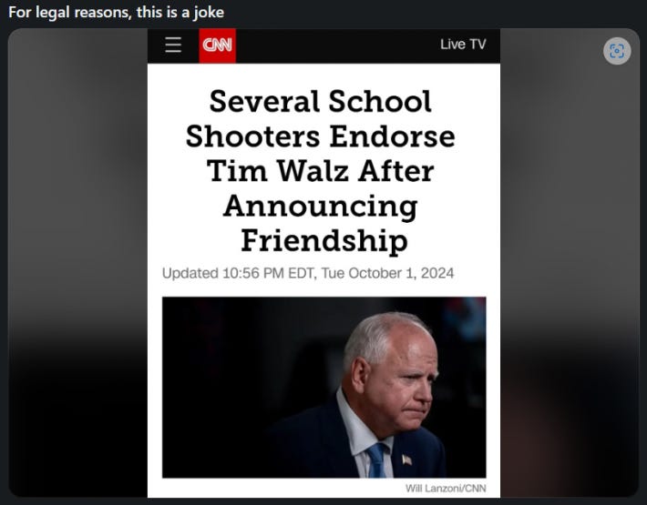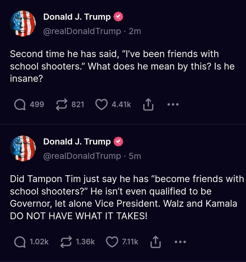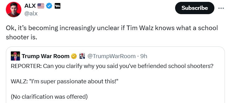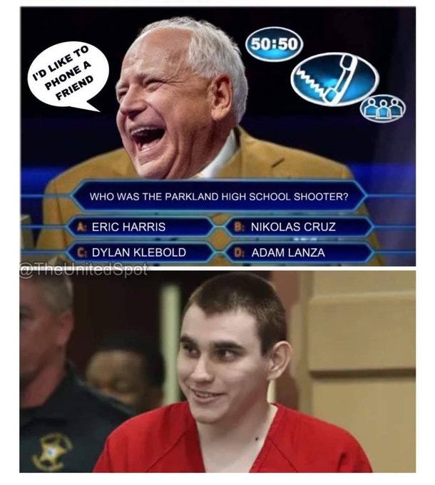 And now for some more Tampon Tim Walz is friends with school shooters memes…