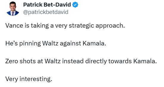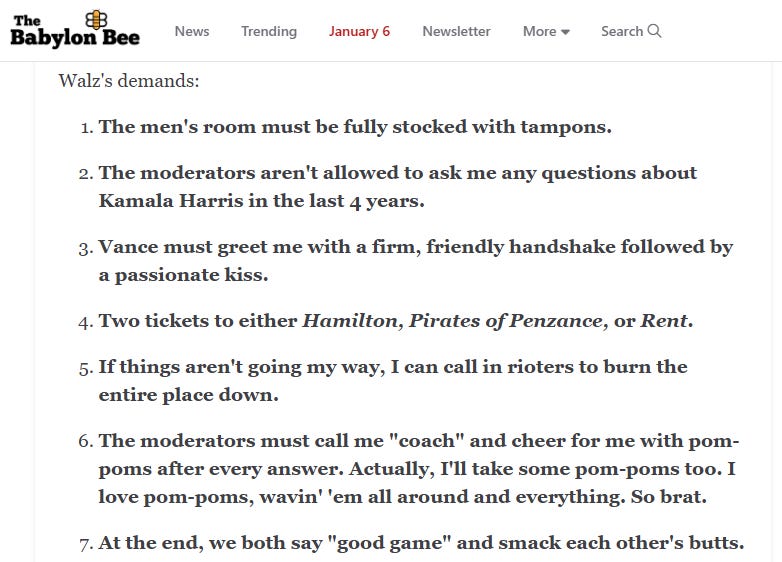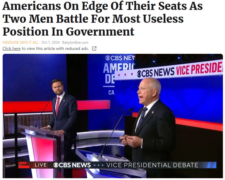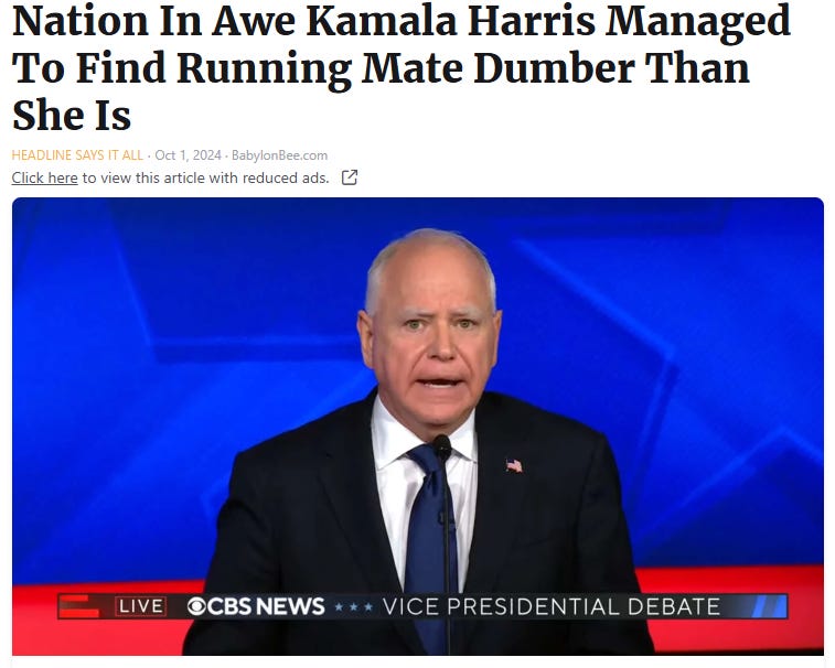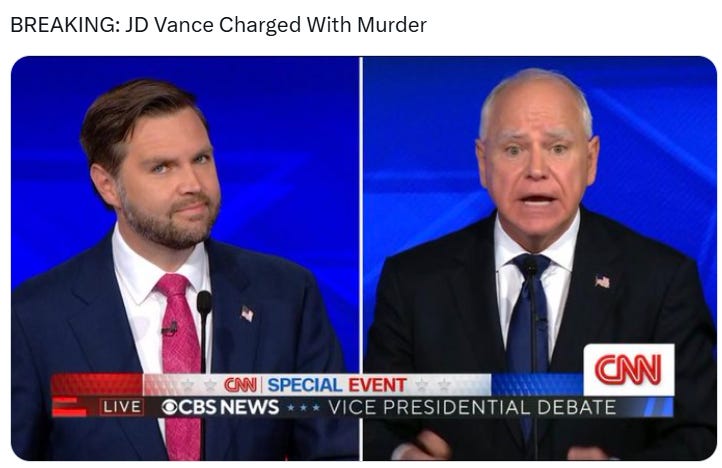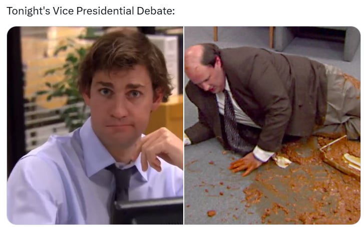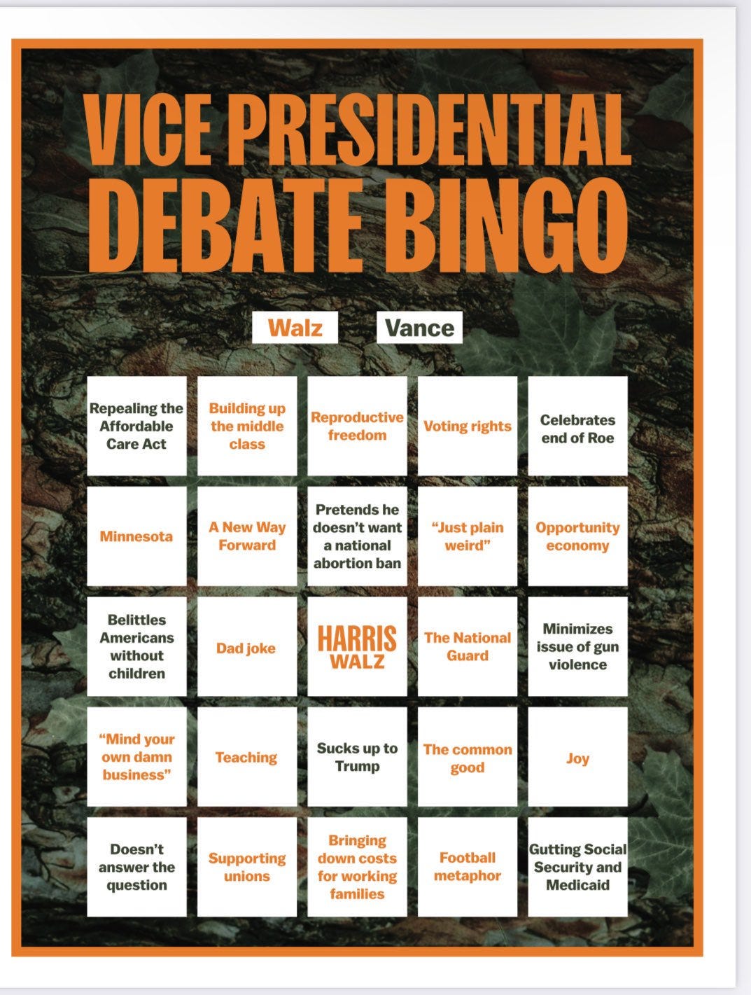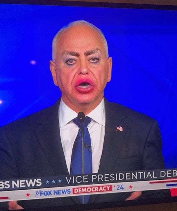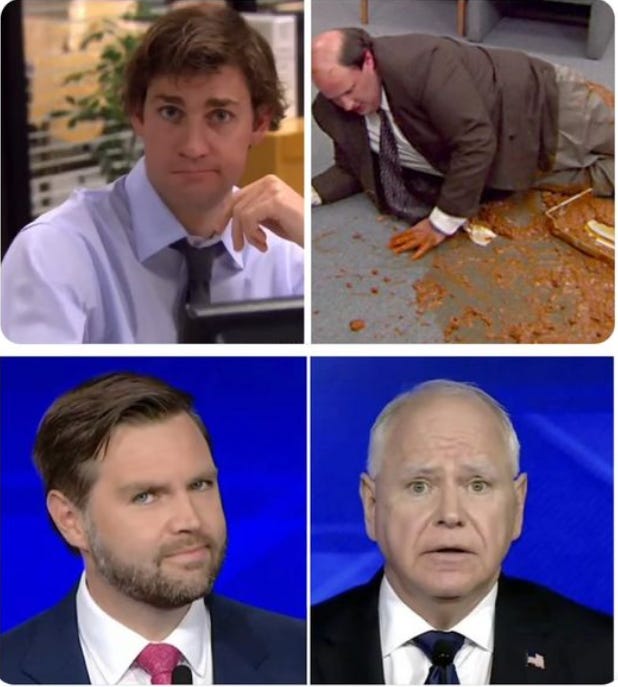 All for a job not worth a bucket of warm piss, Waltz has friends in low places (school shooters for Harris/Walz), VEEP debate bingo, that sinking feeling (dumber than Kamala) & more VEEP debate memes!