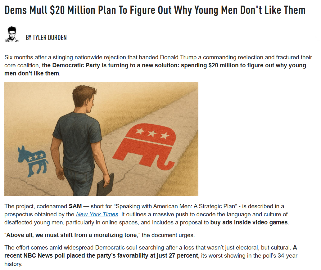 It’s no secret that the Democrats hate men and that men increasingly hate Democrats BUT the Democrats are planning to spend $20 million to figure out why: