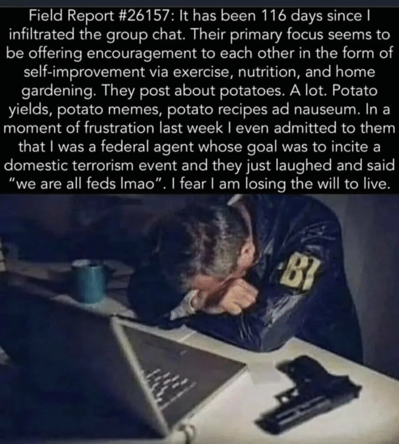 Also see: FBIsteria: Top 16 Ways to Prevent FBI Raids and Have the FEDs Passover You and FBIsteria: The Best Fed Memes from the "Justice for J6" Rally (How to Spot a Fed)