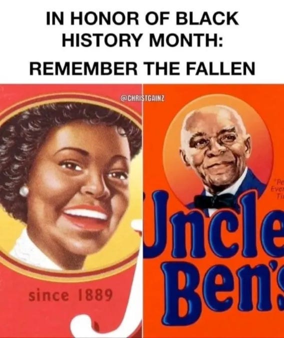 Some reminders for you racists reading this post, remember the fallen (Aunt Jemima, Uncle Ben etc), she went black (and he never came back 🙄) and more race memes for Black History Month!