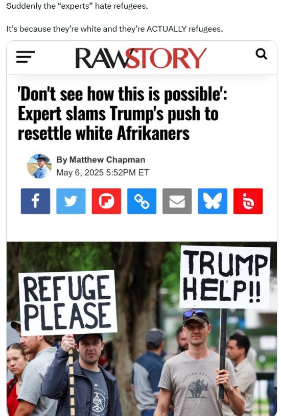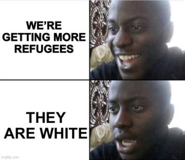 Just like that, Trump got leftists to hate refugees (it only took about 50 White Christian refugees). Their refugees vs. our refugees & more Democrats & the Episcopal Church hate White refugee memes!