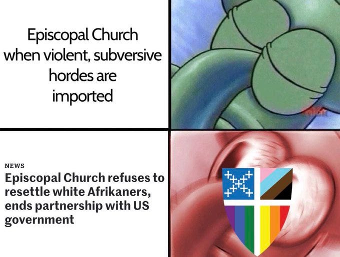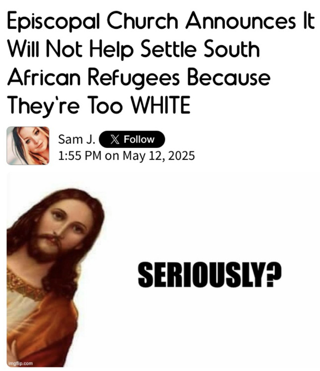And now for some Democrats and the Episcopal Church hate White refugee memes…