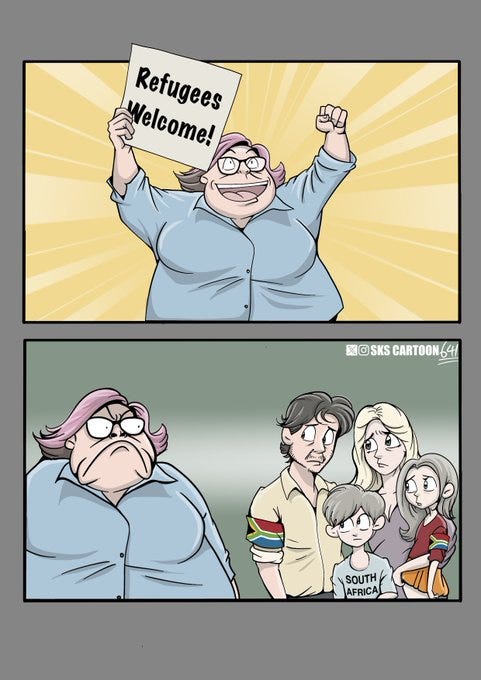 Trump has brought a few dozen refugee Afrikaner farmers to America who are facing persecution in South Africa as these documentaries show: