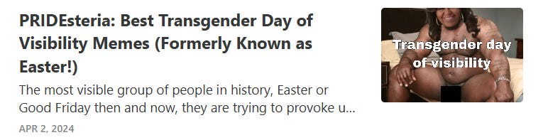 Sunday was Easter, the day formerly known as Transgender Day of Visibility: