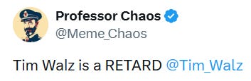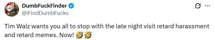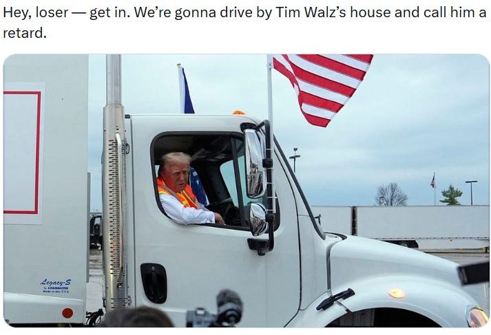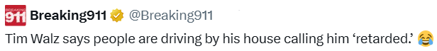 What Tampon Tim Walz is really worried about are people using the dreaded “R word”, especially while driving by his house, and Republicans NOT condemning it:
