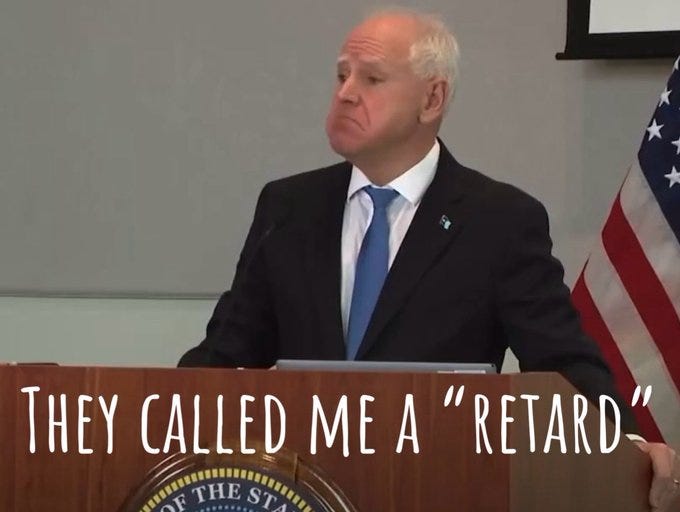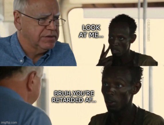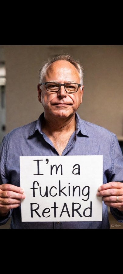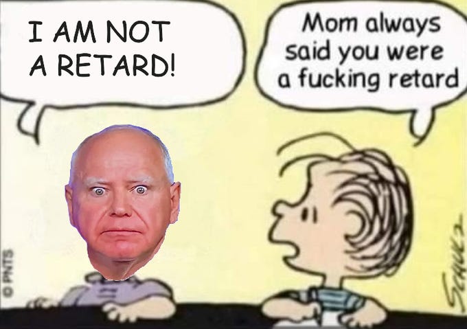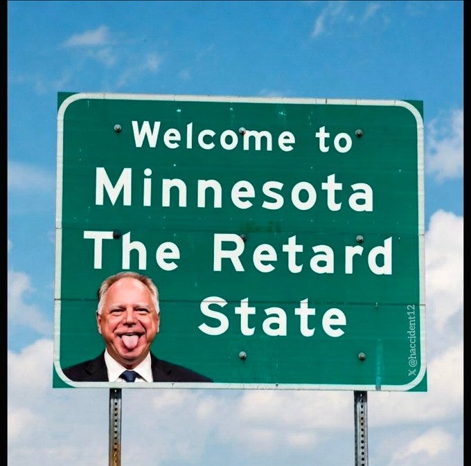 Scammed by people with an average IQ of 68, Minesota (the retard state), don't even think about driving by his house & calling him retarded (he's mad about that already) & more retard Tim Walz memes!