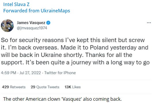 And here’s another social media clown who is back for more “likes” (See Gonzalo Lira’s video about him: James Vasquez Is A Liar and A Fake):