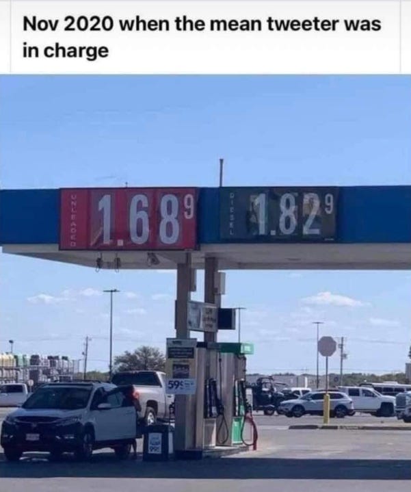 Gas prices and inflation are skyrocketing BUT you can feel good about that because by paying more for EVERYTHING, you help Biden stick it to Putin!