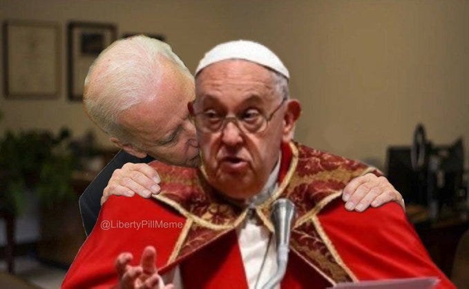 Big dementia is watching you, Frozen, robot Biden, cardboard cutout, fake President + fake Pope, Biden does the Vatican (& gets a little too close to the pope) and more weekend at Biden's memes!
