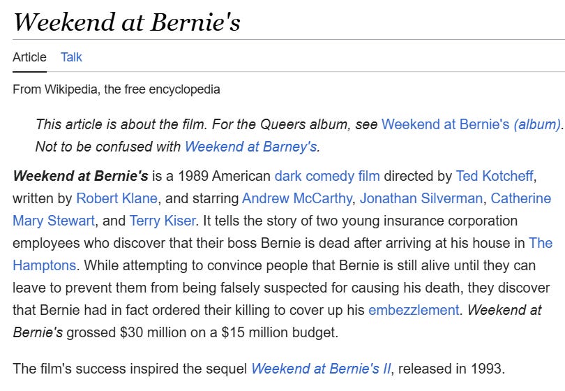 Back in the 1980s, the original Weekend at Bernie’s premiered: