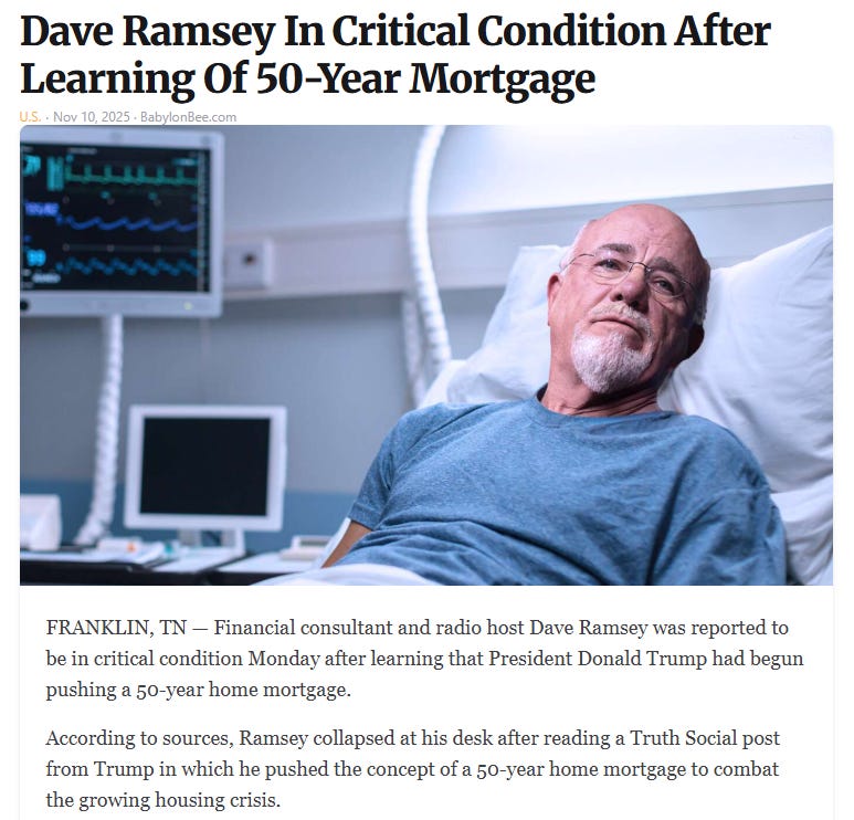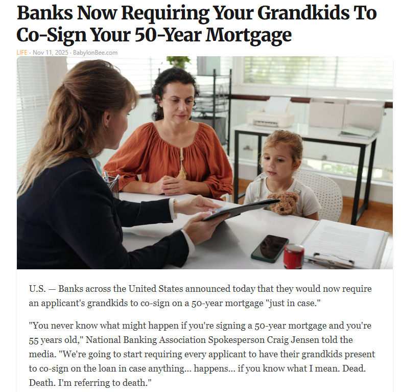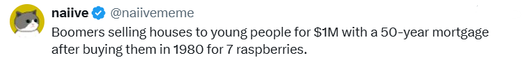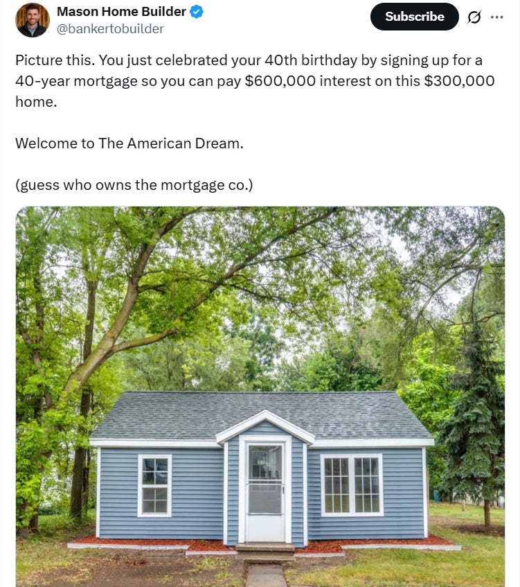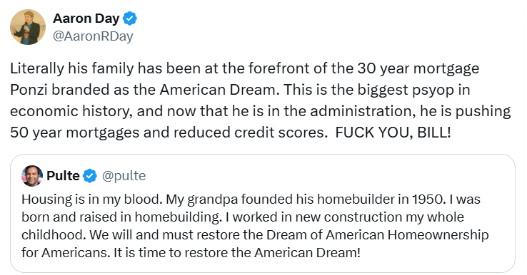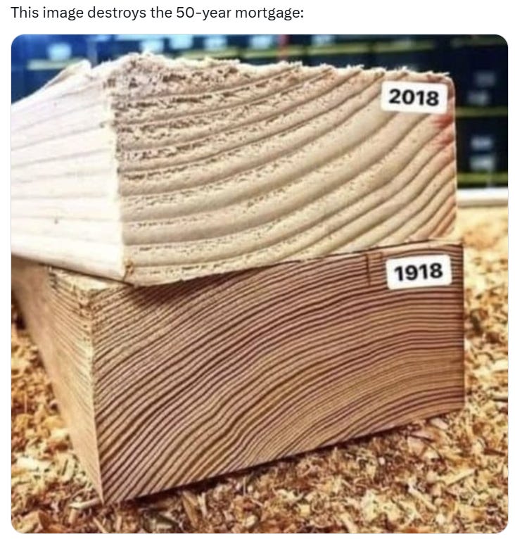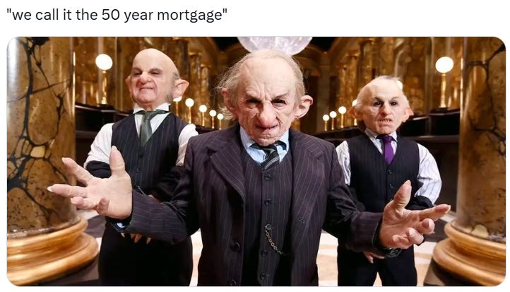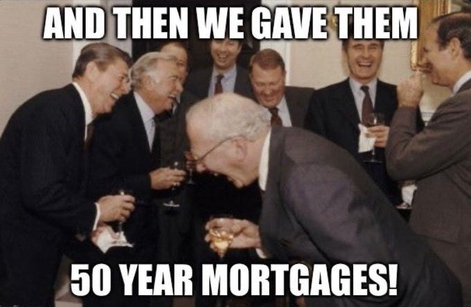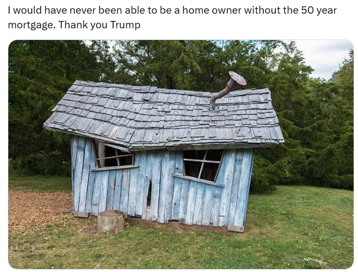 Some braindead Trump Administration official came up with and then Trump floated an idea for a 50-year mortgage (before apparently walking it back) so you will own nothing and be happy…: