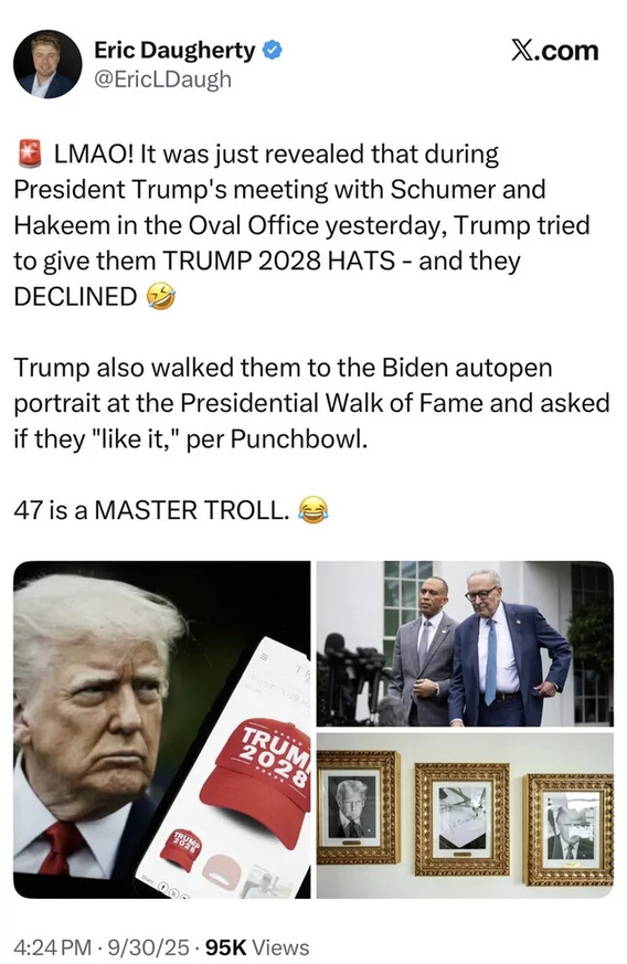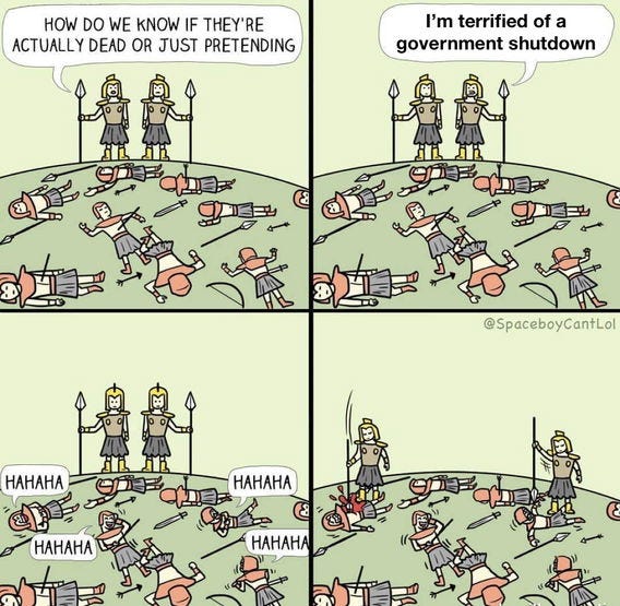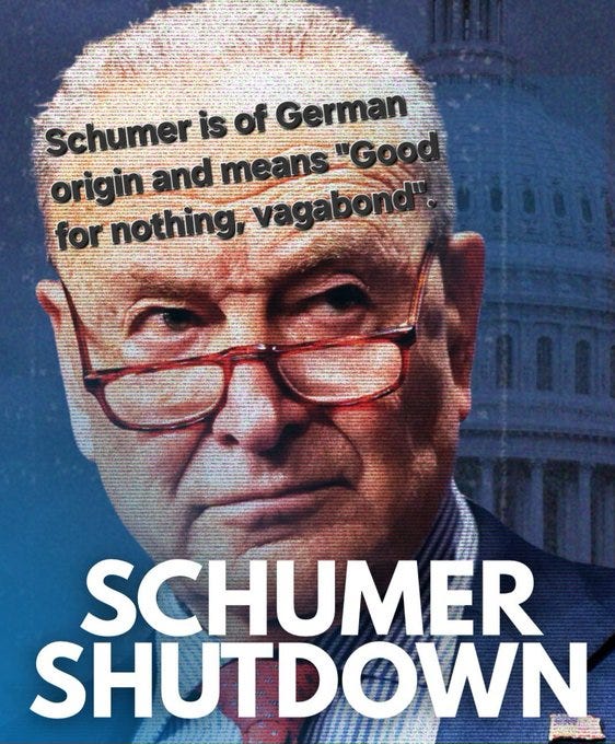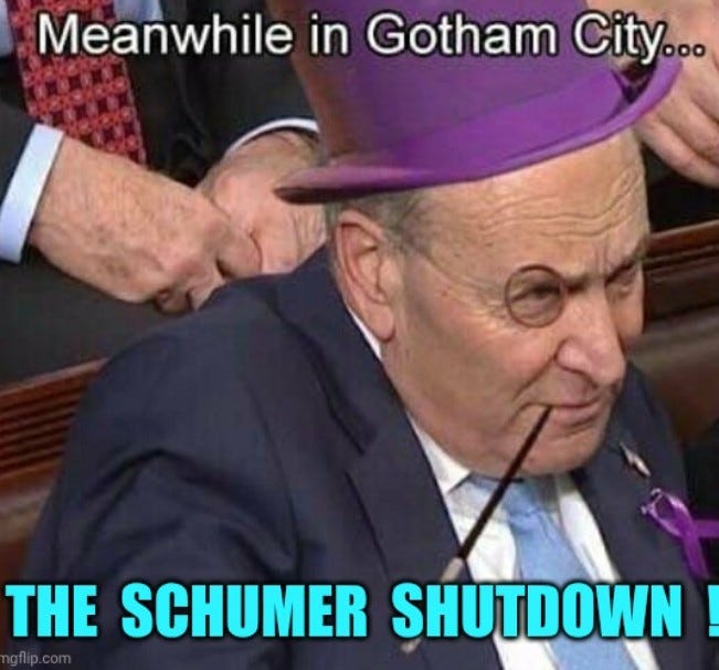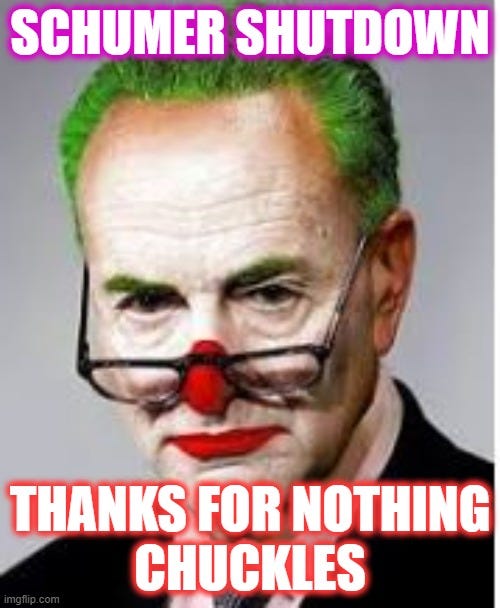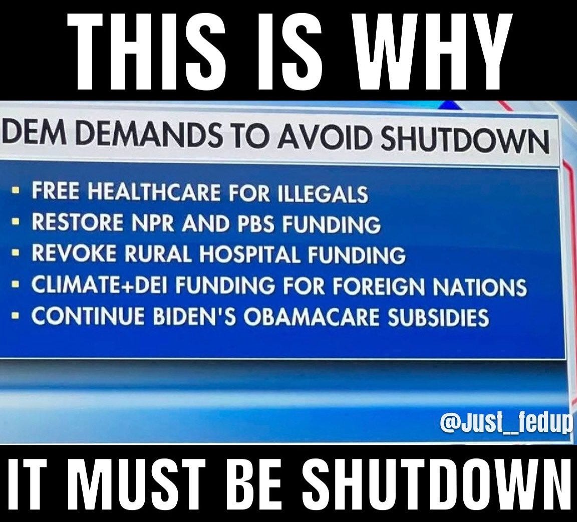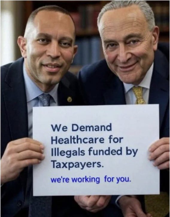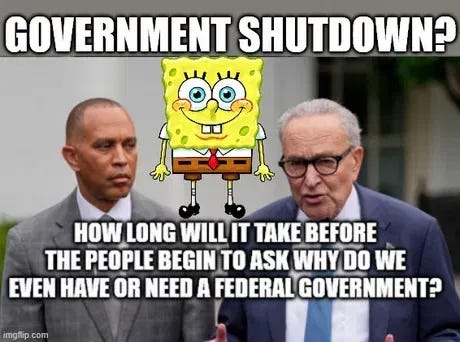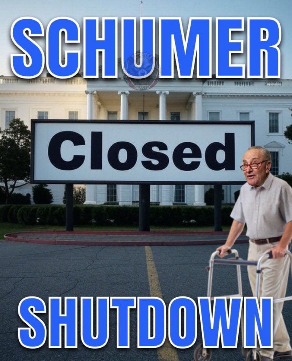 Dems: Free healthcare for illegal aliens (or else the gubment stays shut🤡). Can we shut the gubment down forever? Waiting for the mass firings of useless Feds to start & more Schumer shutdown memes!