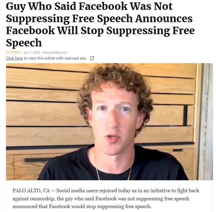bestest (from many): Guy who said Facebook was not suppressing free speech announces Facebook will stop suppressing free speech.