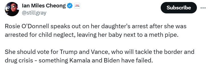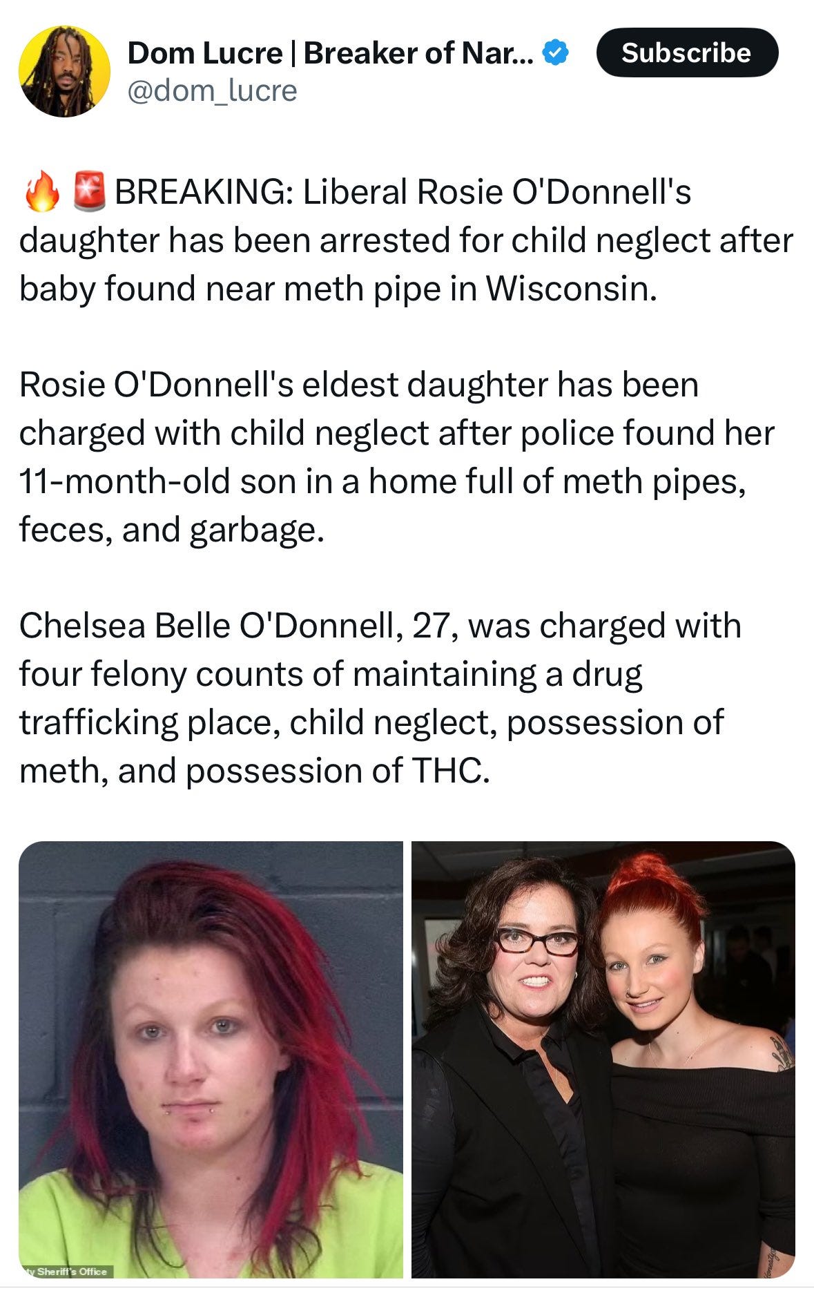 HOWEVER, and all previous memes and humor aside, we should feel bad for any parent, even a person as nasty as Rosie O’Donnell, for being in this situation (the daughter was adopted - so there may have been similar issues involving drugs and mental illness with her biological parents) PLUS being the child of someone in the entertainment business can be difficult: