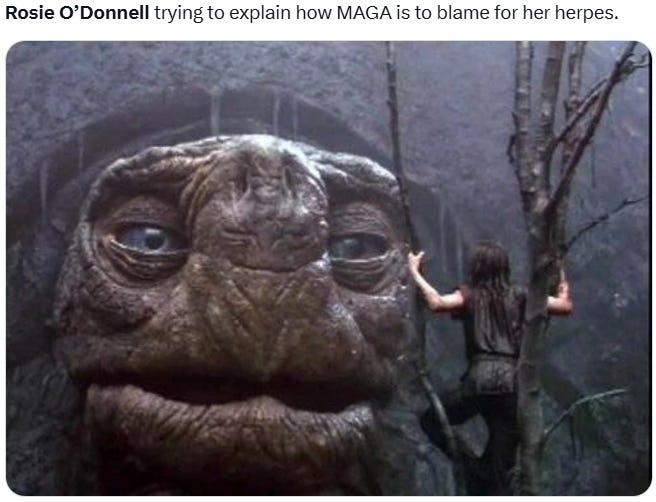 But I know it isn’t my fault or the fault of MAGA/Trump that Rosie O’Donnell has herpes…