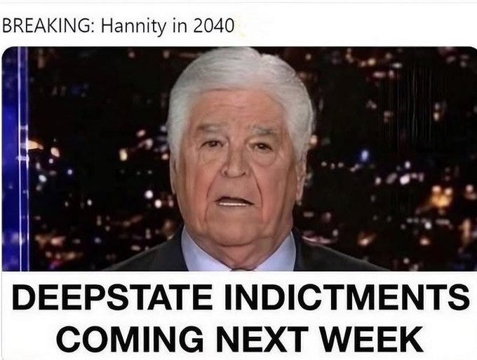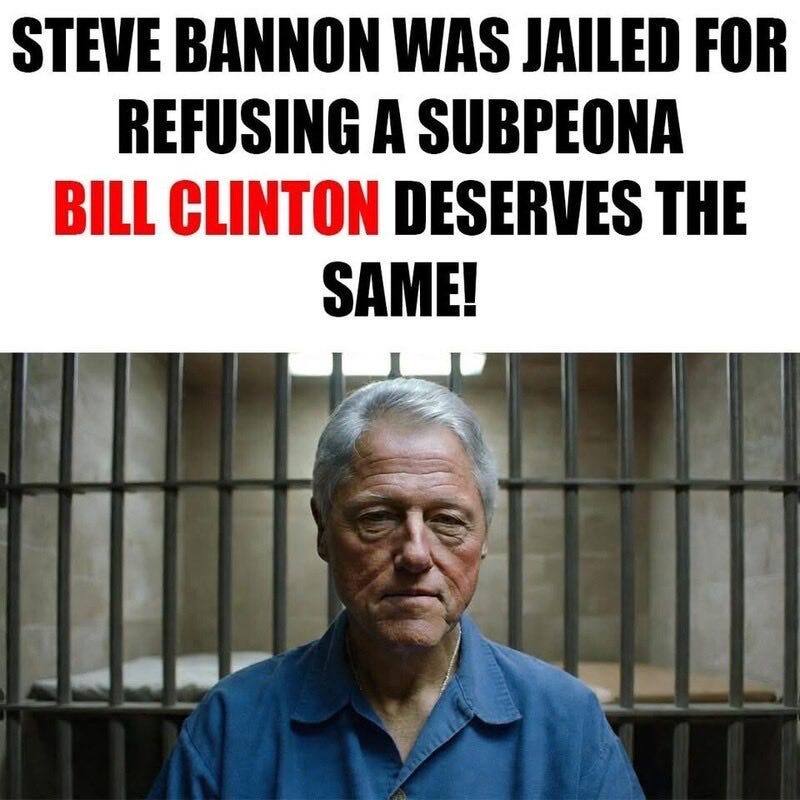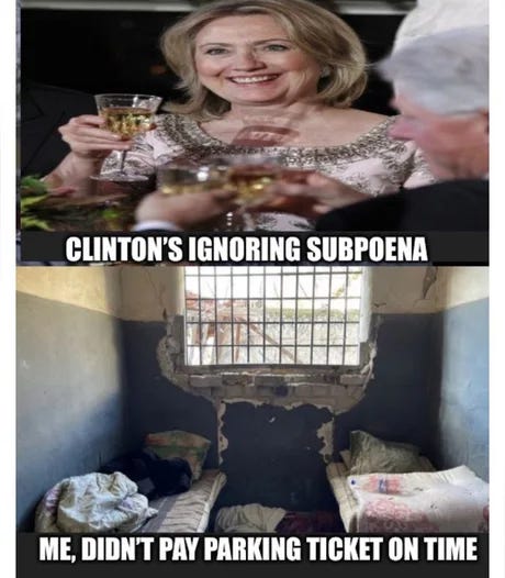 Nobody is above the law - except... Hannity in 2040: "Deep state indictments coming next week!" Epstein files have also failed to appear & more Clinton subpoena memes + what the GOP will do next poll!
