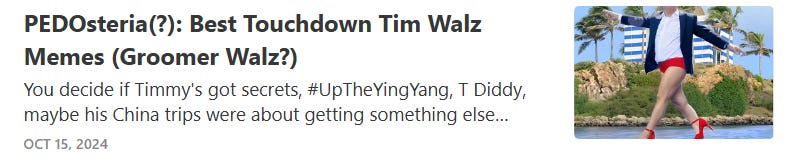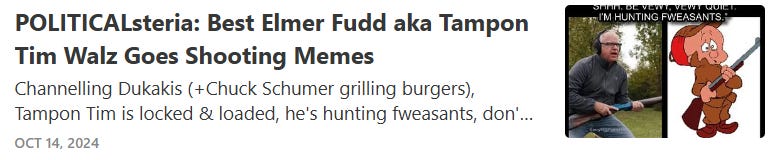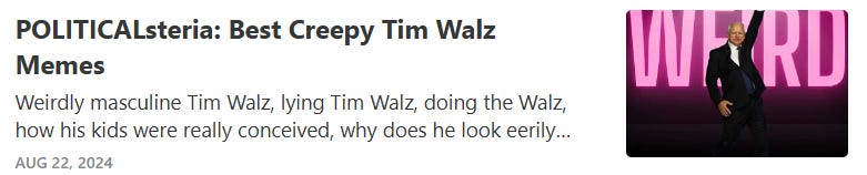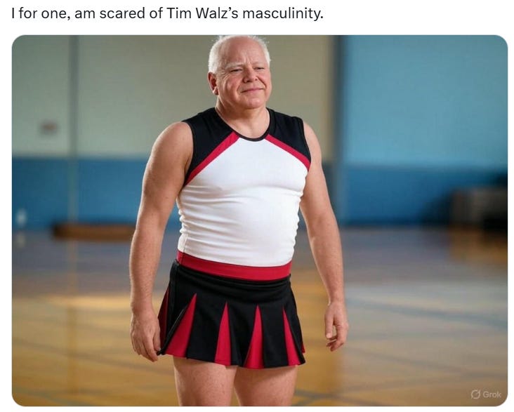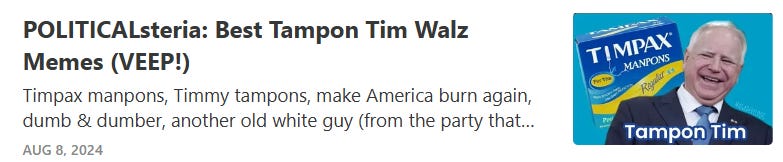 And now for some creepy tampon Tim Walz's masculinity intimidates MAGA memes…