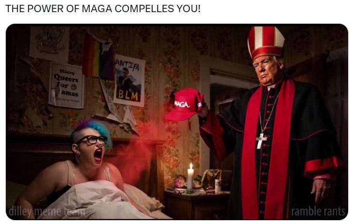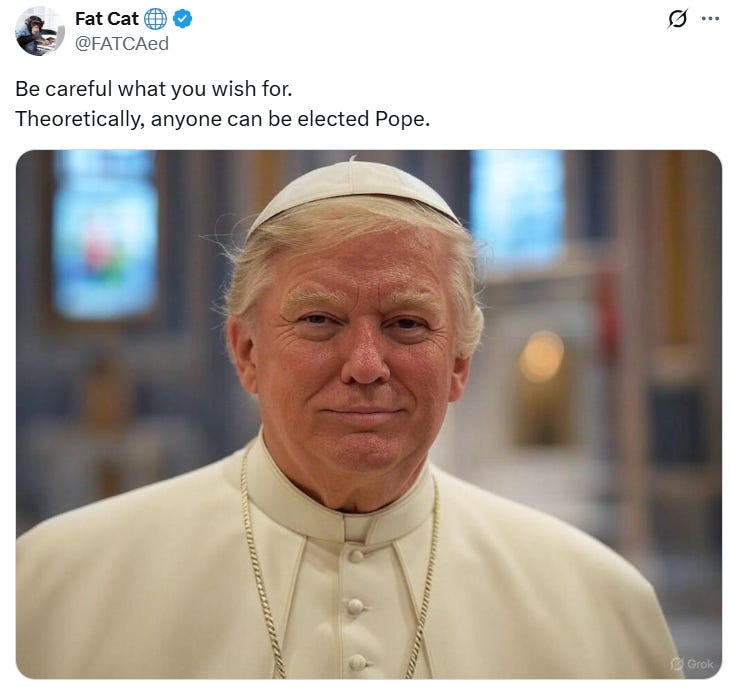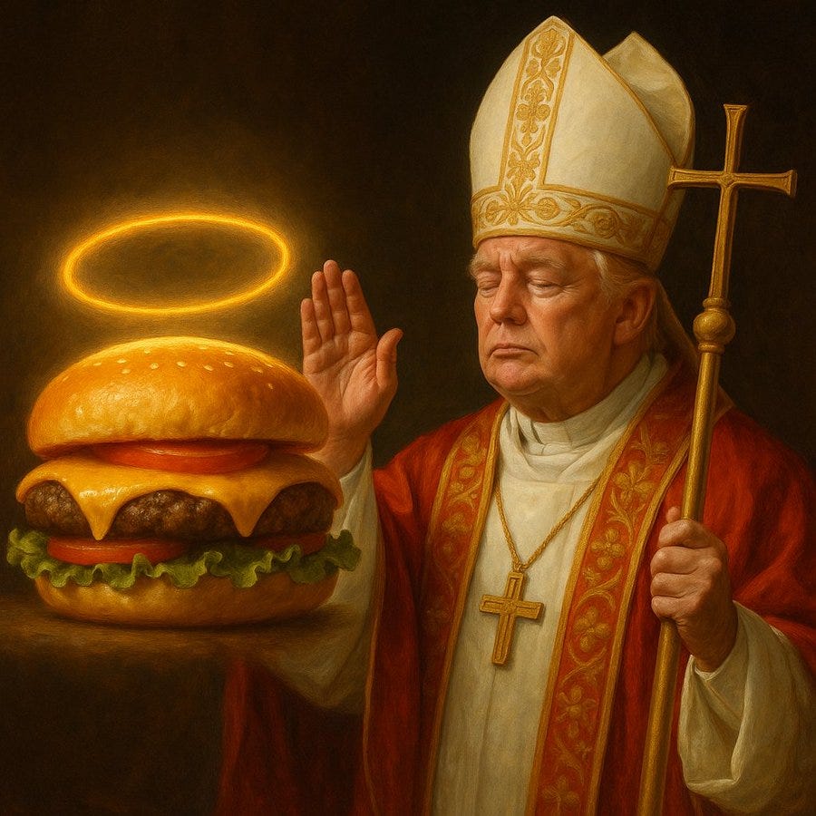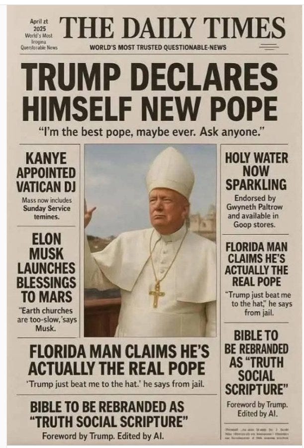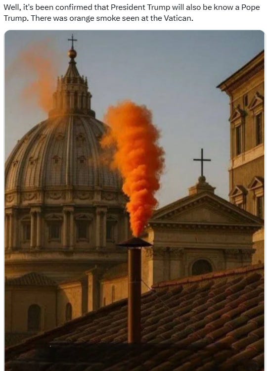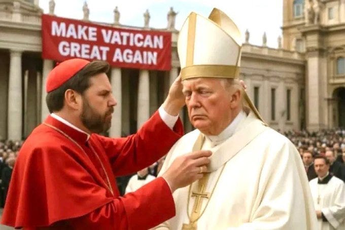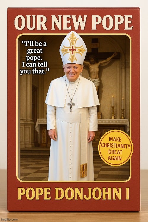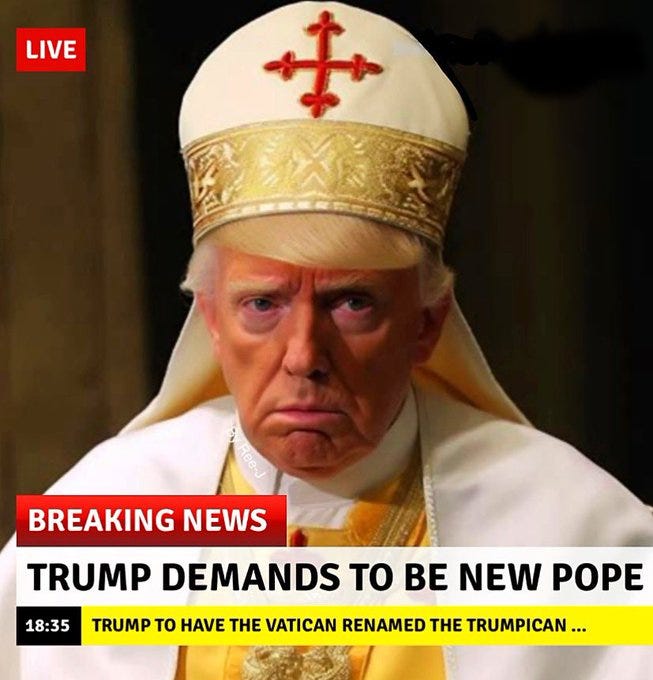 The power of MAGA compels you (be gone demons!), make the Vatican (& Catholicism) great again, the Trumpmobile, Pope Don John I, waiting for the orange smoke and more Pope Trump memes!