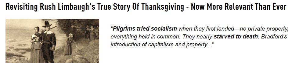 Saying this has something to do with the organization of the Pilgrims is just Limbaugh being a whore for the ruling class.