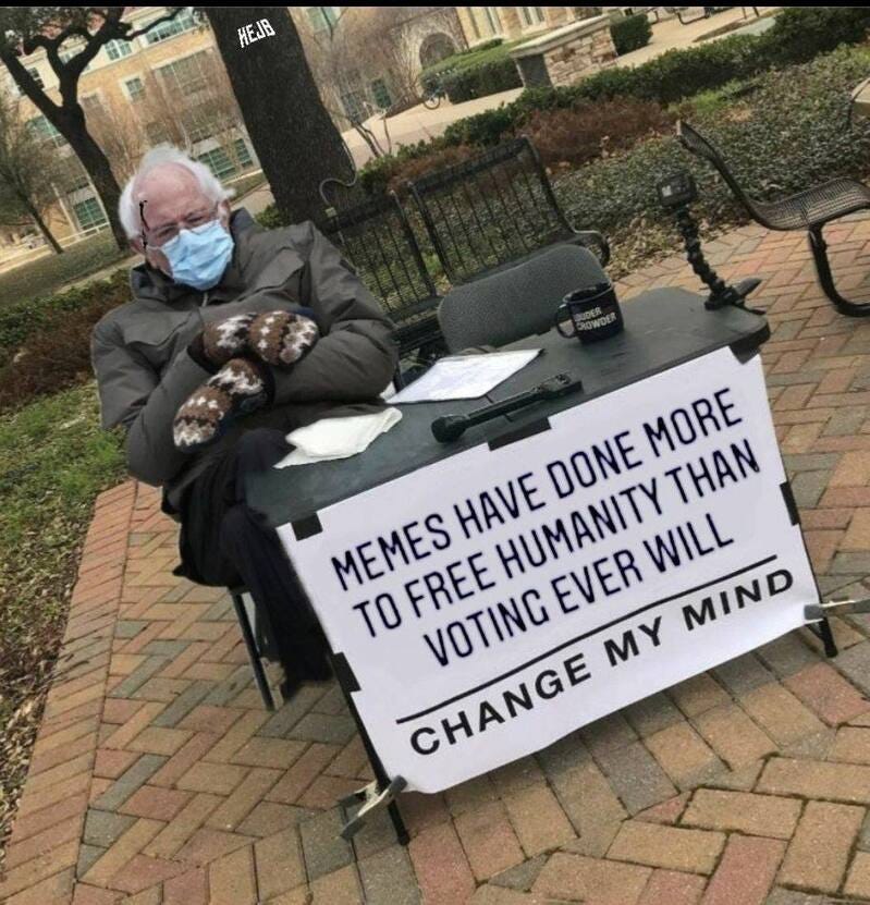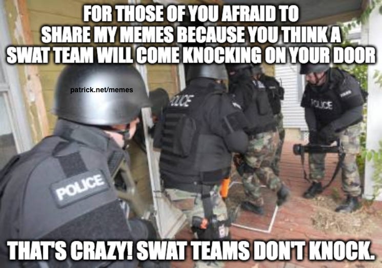 Share some memes & stop worrying about them knocking on your door (coz the SWAT team doesn't knock), memes are more useful than voting and more memes about memers resisting with memes!