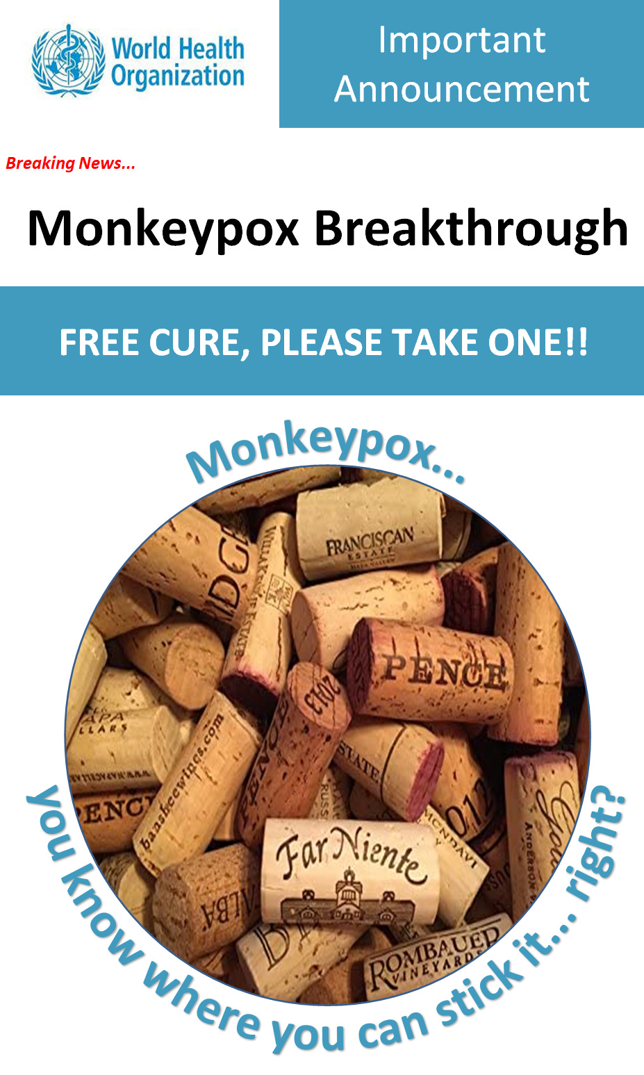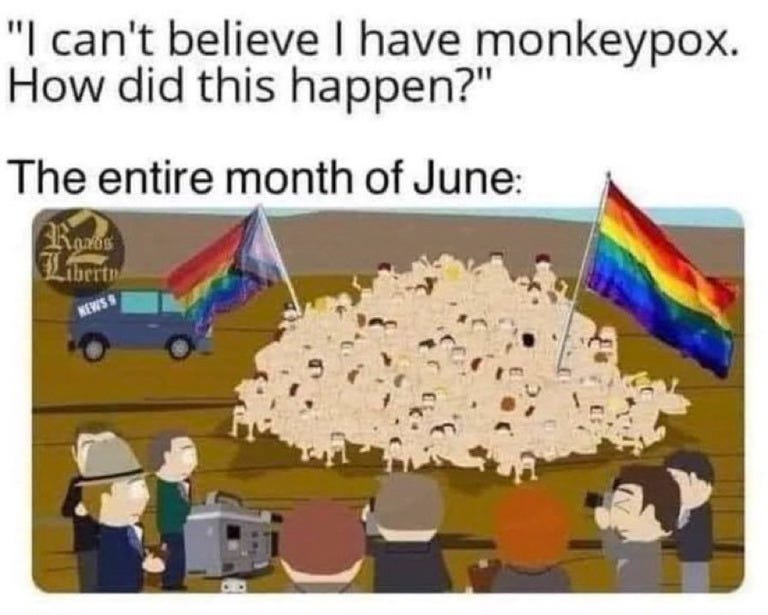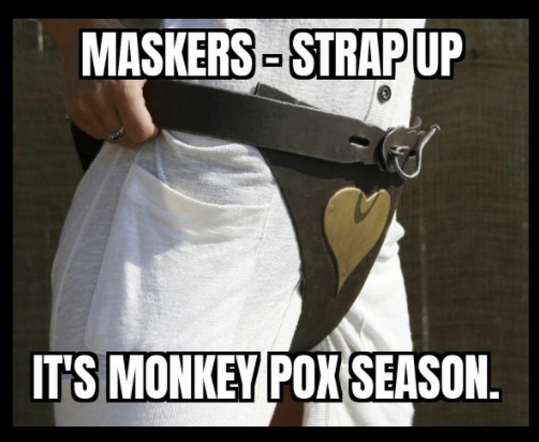 And remember, a Monkeypox test kit that has not ripened and is still hard could be brought to a Pride event and used for… other purposes…